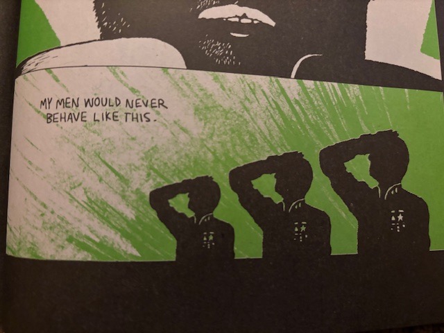 Though, there is a similar thematic thread between the two comics. Old Caves is more pointed in its focus, but Vile #1 suggests the main character, a commanding war hero certain of his value and of what he believes, comes to question everything he knows. This idea that we hold onto our assumptions as fact even though everything can go sideways. See the panel (below) where he says “my men” would never go against his word, and they do, and at large, so does the God he served.