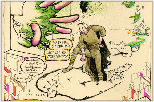 I think this earlier blog post spoiled the surprise, but whatever, this was a good year for Dragon readers. TSDF may make up most of the reason for a number 1 spot, but Larsen’s Dragon all by its lonesome would still easily rank somewhere on my top 10. Why? It’s comics. It’s larger than life, it’s issue-to-issue, it’s entertaining, it experiments, and it’s free, and even though it’s most always been those things, 2011 was the year Dragon juiced up a bit and showed the public what it could really do. I feel this was the year the book was somehow legitimized. It only had to plummet in sales to reach such a standard … But I believe bringing in Michel Fiffe and Co. helped as well because sharing the staples with Larsen’s comics were an assortment of art comic favorites. As my earlier essay states, TSDF embodies that ideal comic book, mashing super heroes with alternative story tellers to celebrate all of what the medium has to offer. I feel the project will only stand as an example for what’s possible in the future. Or if anything, it should because TSDF is the cue mainstream comics needs to take. I just love that the guy and book people enjoy so much to write off made the point and came away fueling the best comics of 2011. How’s that for justice?