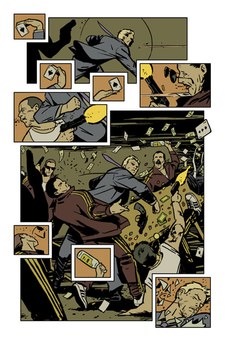 And Fraction writes to that, connecting Barton’s characterization to the territory he frequents. It’s his way of saying “Hawkeye a.k.a. Clint Barton. Avenger. Human being. No super powers” without going the route of a cheap caption or bad narration. Instead, he seems to lift a little bit from Miller’s Daredevil, blending setting and character together, and arriving at this conclusion that Hawkeye is down to Earth because of where he lives.