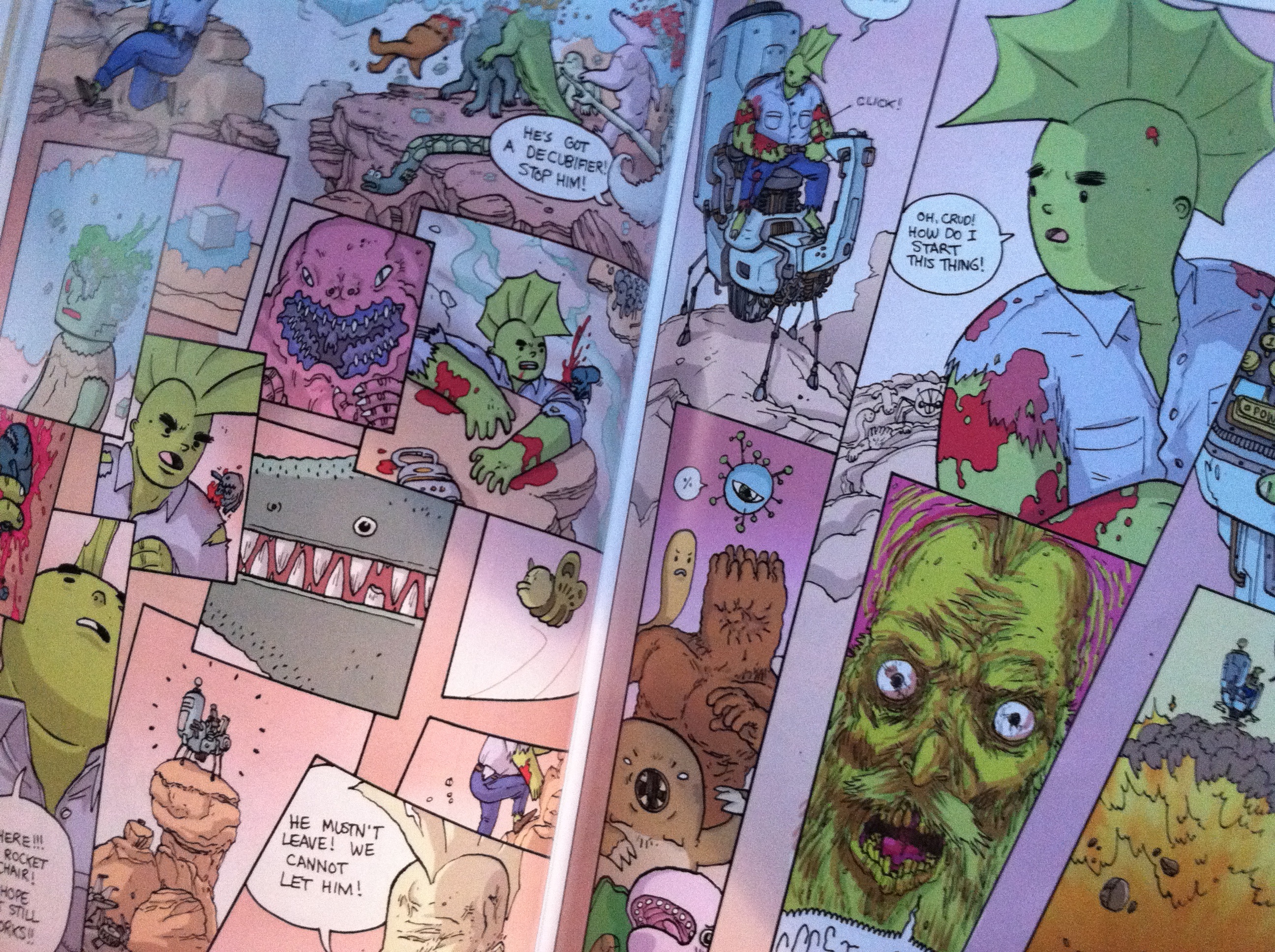 Twisted Savage Dragon Funnies is an anthology series edited by Michel Fiffe which originally appeared in single issues of Erik Larsen’s Savage Dragon. Now, TSDF resides in a trade paper back collection, and it spotlights the work of many excellent cartoonists doing their own Savage Dragon stories.